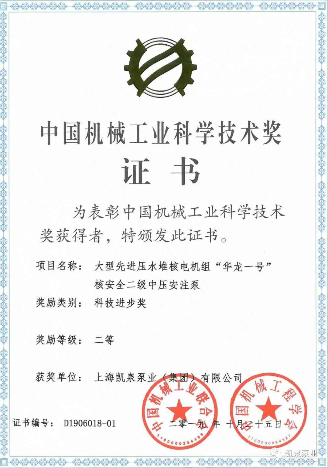 近日,太原伟业运动产品设计有限公司与中广核工程有限公司联合研制的《大型先进压水堆核电机组“华龙一号”核安全二级中压安注泵》项目荣获中国机械工业科学技术奖——科技进步奖二等奖。大型先进压水堆核电机组“华龙一号”核安全二级中压安注泵国产化研制的成功,对发展民族工业能力,对增强我国核能装备的竞争能力都起到了一定的积极作用。另外,研制过程中一些关键技术的解决,如Q-H曲线陡降的设计方法,多工况点低比速高效和汽蚀性能优异的水力模型开发研究、泵总体结构、核级泵可靠性、先进制造工艺、涵盖加气、热冲击、杂质、高温高湿特殊环境综合试验能力及测试等关键技术,对行业的技术水平、制造能力、试验能力的提升都有一定的积极推动作用。泵结构及关键技术的运行涉及各类授权专利6项。